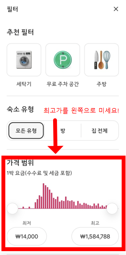 - 숙소 유형: 집, 아파트, 독채, 개인실 등 숙소 유형을 선택할 수 있어요.