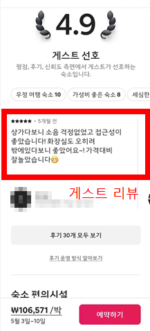 - 리뷰: 숙박한 다른 여행자들의 후기를 반드시 확인하세요. 리뷰를 통해 숙소의 실제 상태를 알 수 있고, 호스트의 대응도 알 수 있어요.